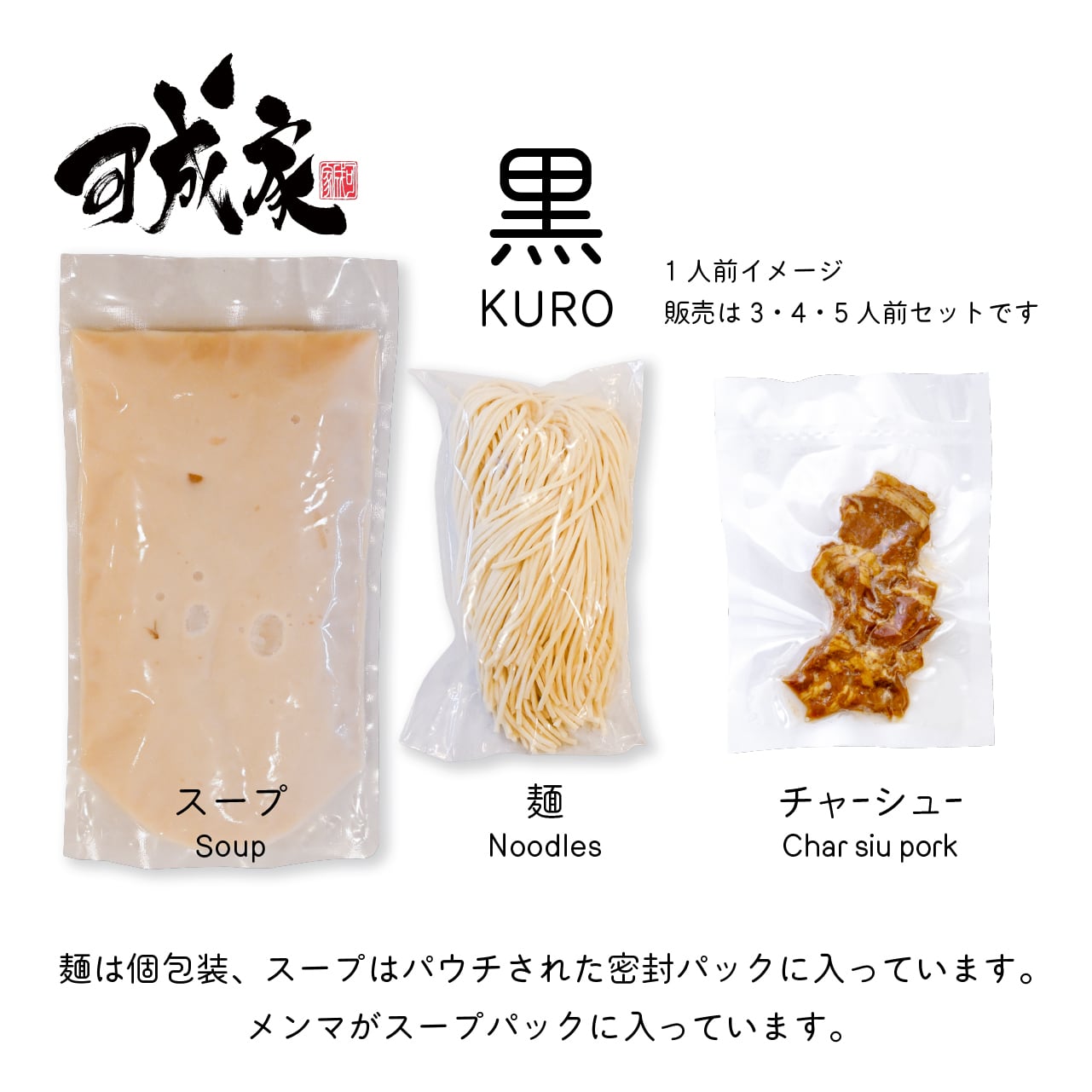・生麺一玉・黒スープ(冷凍)・チャーシュー(冷凍)